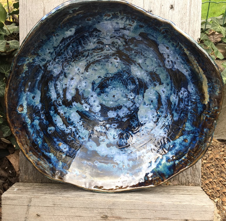 Veľká masívna misa v roznych modrach odtieňoch so skrytým vzorom.