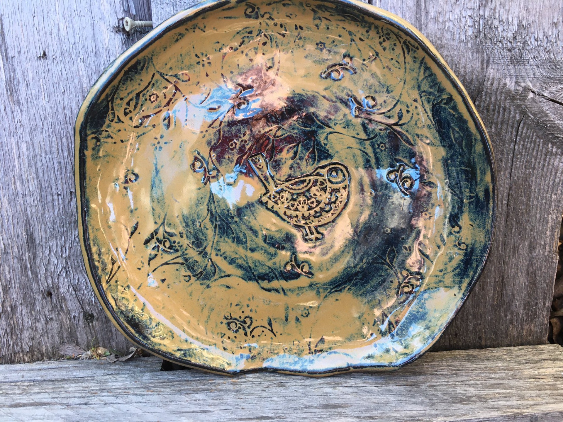 Malý nízky tanierik s motívom rustikalneho vtáčika